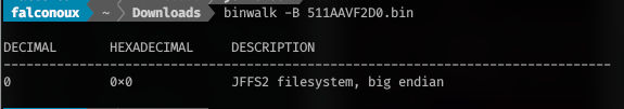 disini bisa kita lihat deskripsi filesystem yaitu JFFS2 maka nanti nya kita akan reverse menggunakan jefferson, sebelumnya kita extract file tersebut menggunakan binwalk.
