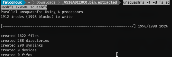 $ unsquashfs -f -d fs_squashfs 1706DF.squashfs